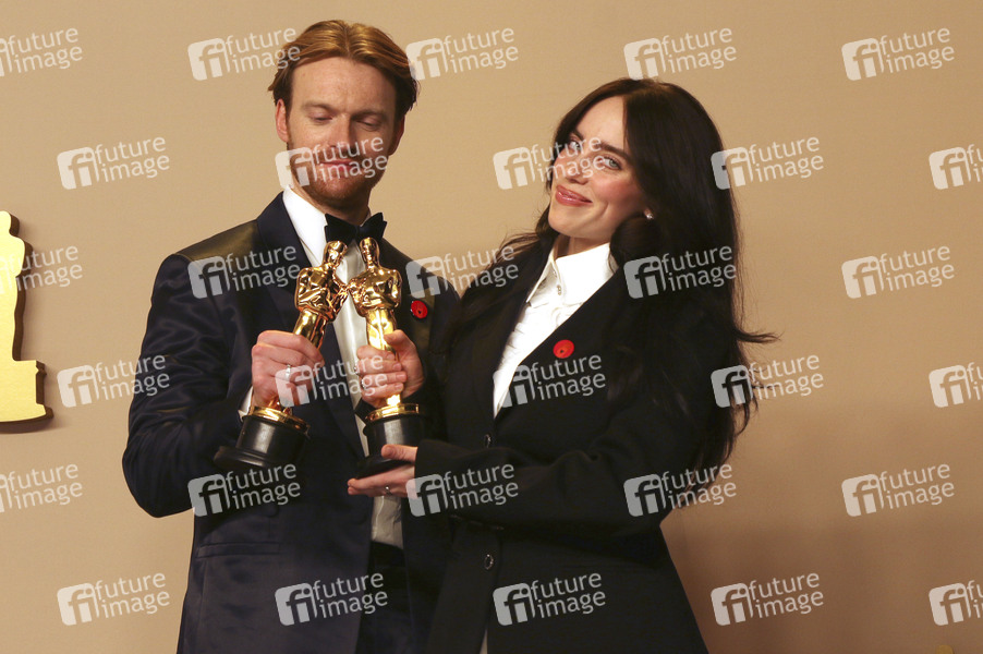 Finneas O'Connell und Billie Eilish mit dem Oscar für den besten Filmsong 'What Was I Made For?' aus 'Barbie' im Press Room der Oscar Verleihung 2024 / 96th Annual Academy Awards im Dolby Theatre. Los Angeles, 10.03.2024