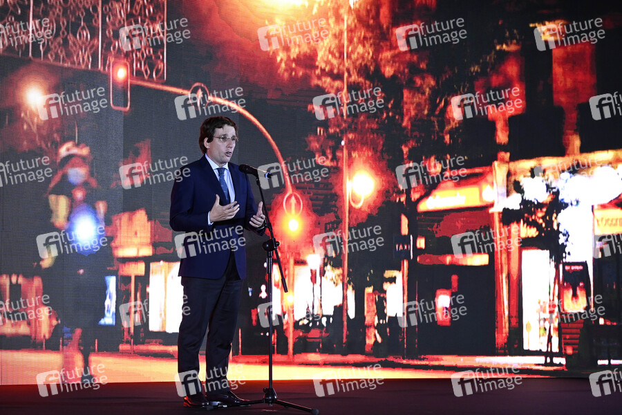 Jose Luis Martinez-Almeida (Bürgermeister von Madrid) beim Einschalten der traditionellen Weihnachtsbeleuchtung im Stadtzentrum. Madrid 26.11.2020