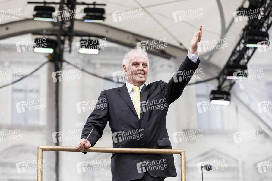Daniel Barenboim beim 'Staatsoper für alle 2019' Event mit den Sinfoniekonzerten 'Felix Mendelssohn Bartholdys Violinkonzert e-Moll' und 'Johannes Brahms zweiter Symphonie' mit der Staatskapelle Berlin live auf dem Bebelplatz. Berlin, 16.06.2019