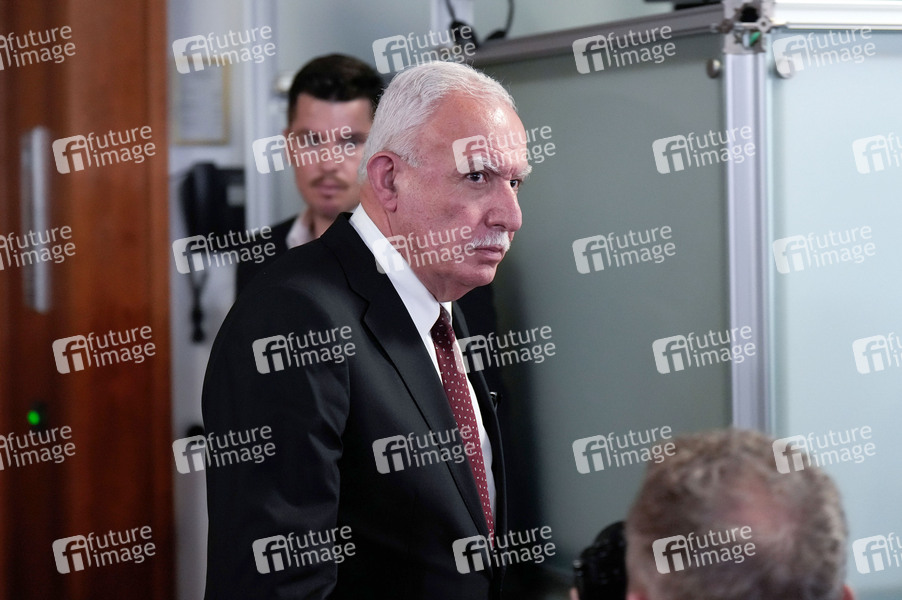 Riyad al-Maliki bei einer Pressekonferenz nach einem gemeinsamen Gespräch von Außenministerin Baerbock und dem Außenminister der Palästinensischen Gebiete, Riyad al-Maliki, im Auswärtigen Amt. Berlin, 13.02.2024