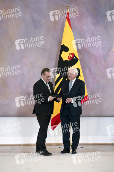Boris Pistorius und Frank-Walter Steinmeier bei der Entlassung der Bundesregierung des 20. Deutschen Bundestages durch den Bundespräsidenten im Schloss Bellevue. Berlin, 25.03.2025