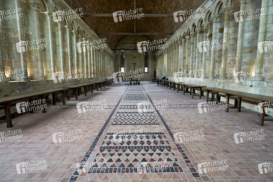 Die Gemeinde Le Mont Saint-Michel mit der Abtei Mont-Saint-Michel liegt in der Bucht des Mont-Saint-Michel im Wattenmeer der Normandie und Anteilen am Festland, Seit 1979 gehören der Berg und seine Bucht zum Weltkulturerbe der UNESCO. Le Mont-Saint-Michel, 03.03.2023