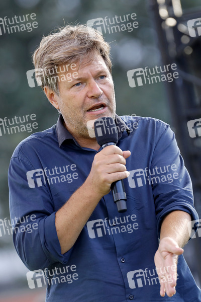 Politiker, MdB, Mitglied des Bundestags, Bündnis 90/Die Grünen, Spitzenkandidat, Rede, Wahlkampf, Auftritt, Bühne, Partei, Bundestagswahl, Wahl 2021, Wahlen, Umweltpolitik, Umwelt, Klimawandel, Klimapolitik, Wahlkampfveranstaltung, Parteienwerbung, Kampagne