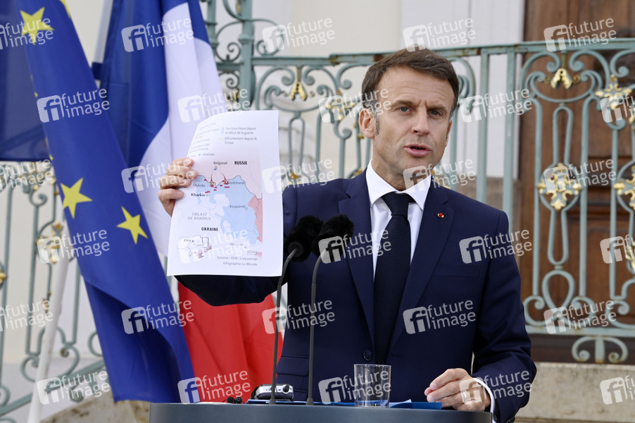 Emmanuel Macron beim Treffen des Deutsch-Französischen Ministerrats im Gästehaus der Bundesregierung Schloss Meseberg. Meseberg, 28.05.2024