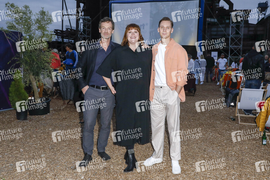 Jörg Hartmann, Stefanie Reinsperger und Rick Okon bei der Premiere des ARD-Krimis 'Tatort - Du bleibst hier' auf dem Gelände der Filmnächte Dortmund. Dortmund, 27.08.2022