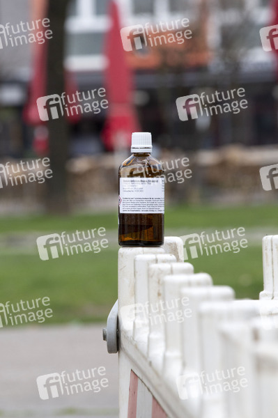 Ethanol-Flasche als Desinfektionsmittel zur Auswirkung des Coronavirus. Köln, 19.03.2020