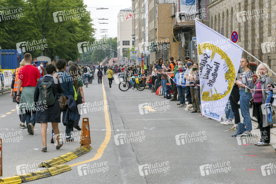 Demonstration vom Bündnis 'Unteilbar' mit einer Menschenkette gegen Rassismus vom Rathaus bis zum Hauptbahnhof. Hamburg, 14.06.2020
