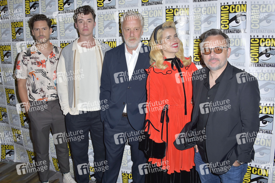 Ben Aldridge, Jack Bannon, Bruno Heller, Paloma Faith und Danny Cannon beim Photocall zur Epix TV-Serie 'Pennyworth' auf der San Diego Comic-Con International 2019 im Hilton Bayfront Hotel. San Diego, 19.07.2019