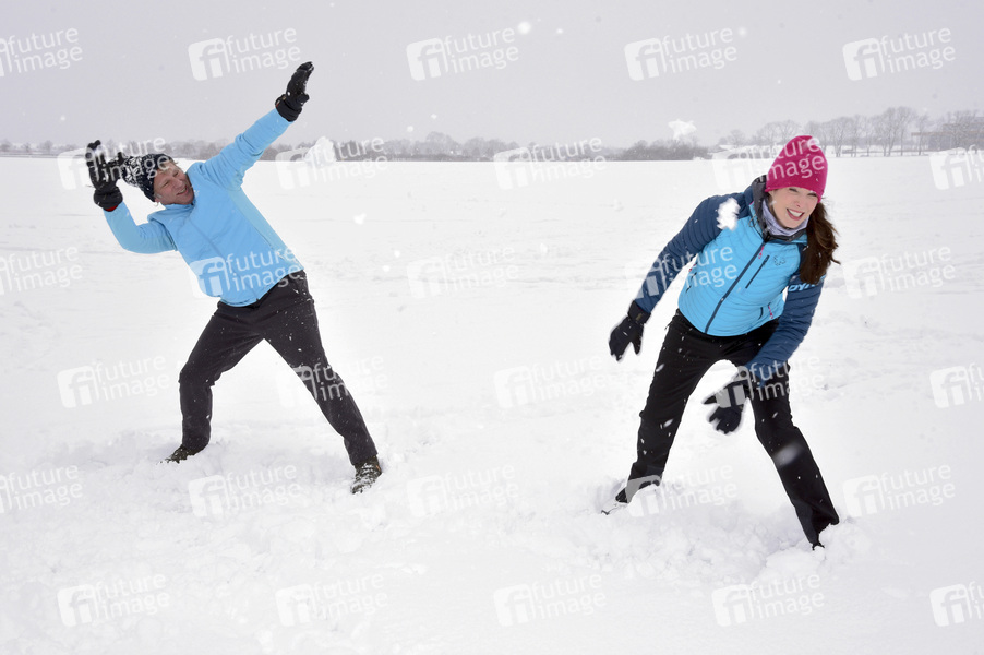 Alexandra Polzin mit Ehemann Gerhard Leinauer beim Winterspaziergang. München, 18.01.2021