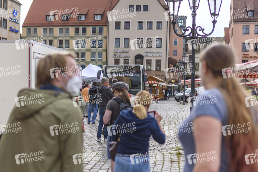 Im Impfbus am Hauptmarkt werden ohne vorherige Terminvereinbarung kostenfreie Covid-Imfungen durchgeführt. Nürnberg, 17.08.2021
