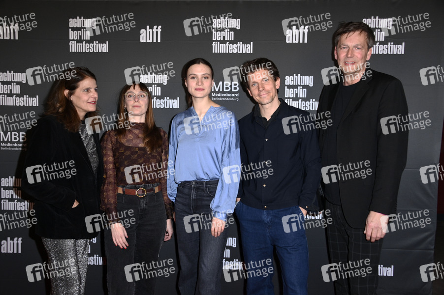 Regina Kräh, Roxana Richters, Marlene Burow, Henning Beckhoff und Sebastian Brose bei der Eröffnung des 21. achtung berlin Filmfestivals mit der Premiere des Kinofilms 'Blindgänger' im Colosseum Filmtheater. Berlin, 02.04.2025