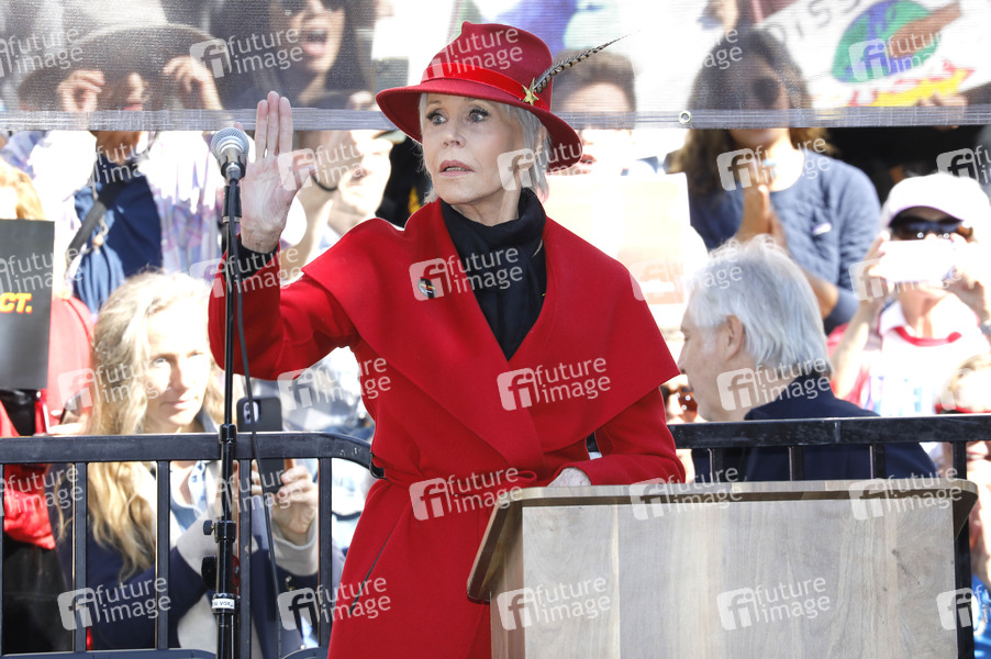 James Fonda spricht bei der Fire Drill Fridays Kundgebung gegen den Klimanotfall vor dem Rathaus. Los Angeles, 07.02.2020