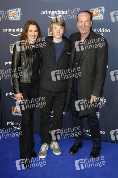 Herbert Knaup mit Ehefrau Christiane Knaup und Sohn Samuel Amado Nelson bei der Premiere der dritten Staffel der Amazon Prime Video Comedy-Gameshow 'LOL: Last One Laughing' im Delphi-Filmpalast. Berlin, 03.04.2022