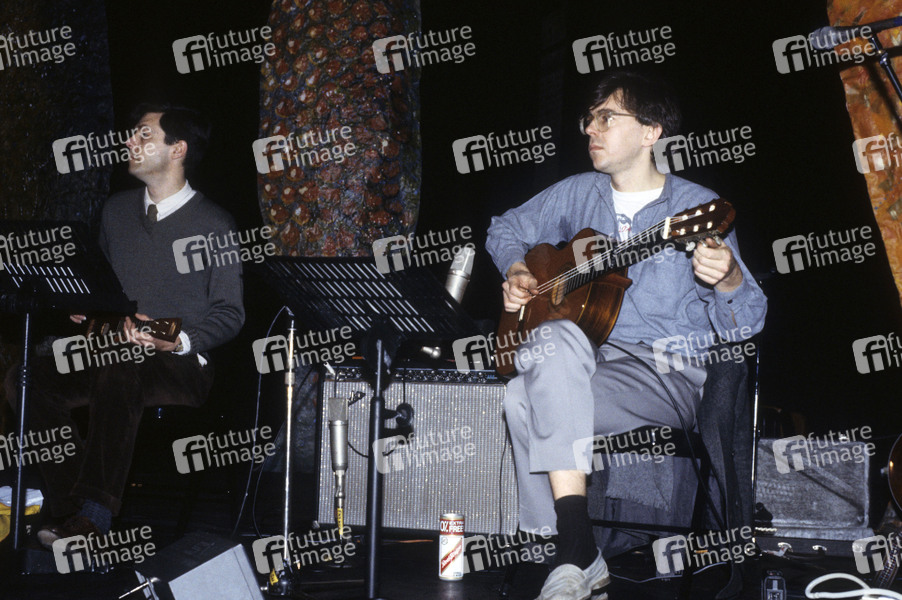 Simon Jeffes vom Penguin Cafe Orchestra beim Soundcheck im Mermaid Theatre. London, 16.12.1984