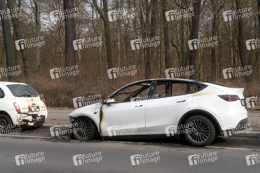 Brand, Feuer, Auto, PKW, Autowrack, Autowracks, Brandstiftung, Fahrzeug, Umweltverschmutzung, Symbolfoto, Symbolbild, Themenfoto, Symbolfoto, Autobrand, Protest gegen Elon Musk
