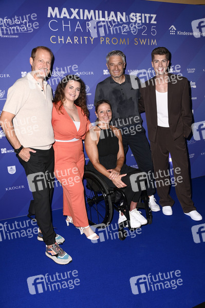 Thomas Lurz, Ronja Forcher, Kirsten Bruhn, Gerd Schönfelder und Maximilian Seitz beim Charity Promi Swim Event 2025 von Maximilian Seitz zugunsten von 'Kindeswohl-Berlin' im Hotel Pullman Berlin Schweizerhof. Berlin, 24.07.2025
