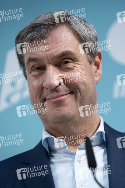 Markus Söder bei einer Pressekonferenz der CSU in der Vertretung des Freistaates Bayern beim Bund. Berlin, 25.02.2025