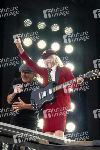 Brian Johnson und Angus Young von AC/DC live bei einem Konzert der 'Power Up'-Tour auf dem Messegelände. Hannover, 31.07.2024