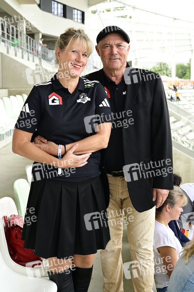 Matthias Atze Döschner mit Ehefrau Dorit Döschner beim Benefiz Cup Dresden 2025 – Fussball für einen guten Zweck im Heinz-Steyer-Stadion. Dresden, 28.09.2025