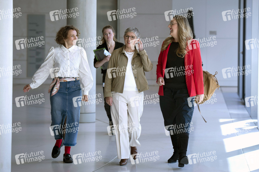 Britta Haßelmann und Katharina Dröge bei der Fraktionssitzung der Bündnis 90/Die Grünen-Bundestagsfraktion im Reichstagsgebäude. Berlin, 30.04.2025