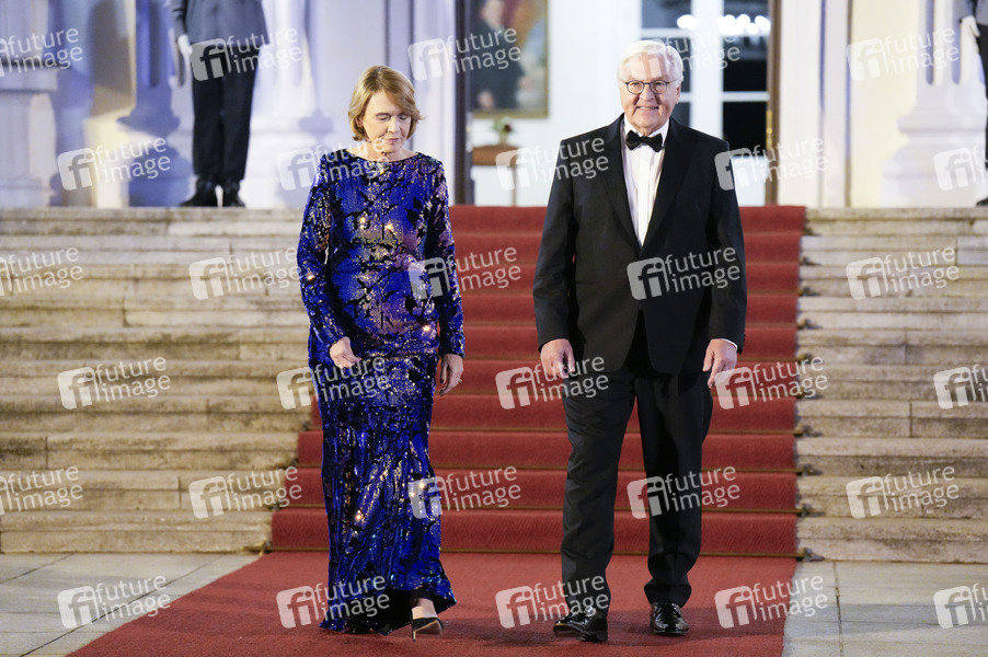 Elke Büdenbender und Frank-Walter Steinmeier bei der Ankunft zum Abendessen anlässlich des 25. Jubiläums der Nordischen Botschaften im Schloss Bellevue. Berlin, 21.10.2024