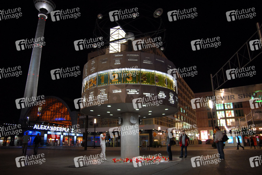 Kerzen zum Andenken an Michael Jackson an der Weltzeituhr am Alexanderplatz, Berlin