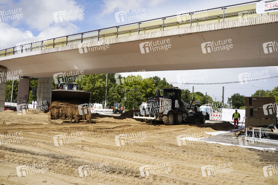 Beginn vom Abriss der maroden Brücke an der Wuhlheide (Oberschöneweide). Die kaputte Brücke soll schnellstmöglich entfernt werden mit dem Ziel, die Freigabe der blockieren Straßenbahntrasse und Wiederherstellung des Fuß- und Radverkehrs zwischen Treskowallee und Edisonstraße möglichst bis zum 30. Mai. Berlin, 23.05.2025