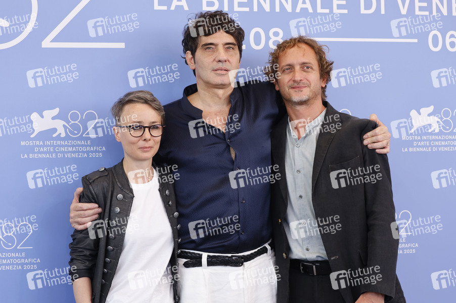 Letizia Russo, Pietro Marcello und Guido Silei beim Photocall zum Kinofilm 'Duse' auf der Biennale di Venezia 2025 / 82. Internationale Filmfestspiele von Venedig im Palazzo del Casino. Venedig, 03.09.2025