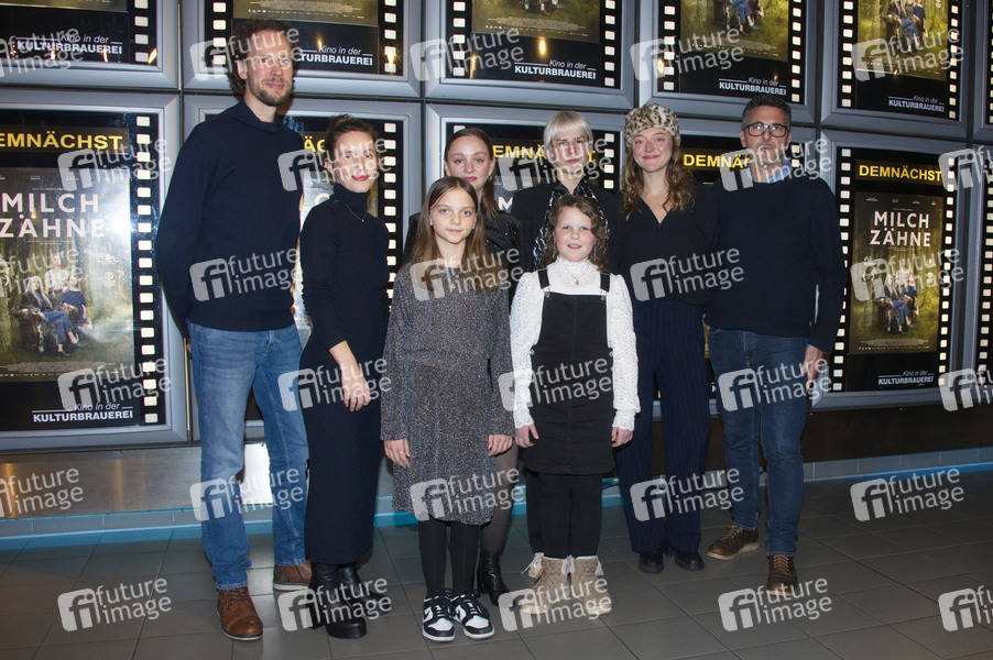 Jakob D. Weydemann, Sophia Bösch, Rosa Wirtz, Mathilde Bundschuh, Helene Bukowski, Viola Hinz, Lola Dockhorn und Roman Gielke bei der Premiere des Kinofilms 'Milchzähne' im Kino in der Kulturbrauerei. Berlin, 20.11.2024