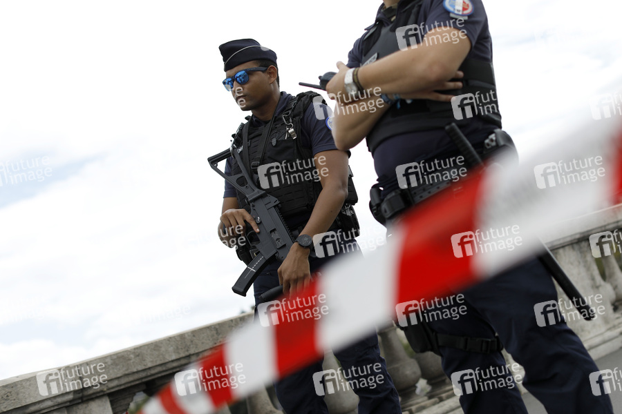 Tourismus, Touristen, Sightseeing, Stadt der Liebe, Architektur, Sommer in Paris, Reiseziel, Frankreich, Kultur, Polizei, Polizist, Polizistin, Polizisten, Pariser Polizei, französische Polizisten, Streife, innere Sicherheit, Sicherheitsmaßnahmen, Terrorabwehr, Terror-Gefahr, Nationalpolizei, CRS, Republikanische Sicherheitskompanien, Compagnies Républicaines de Sécurité, Police nationale, Nationalpolizei