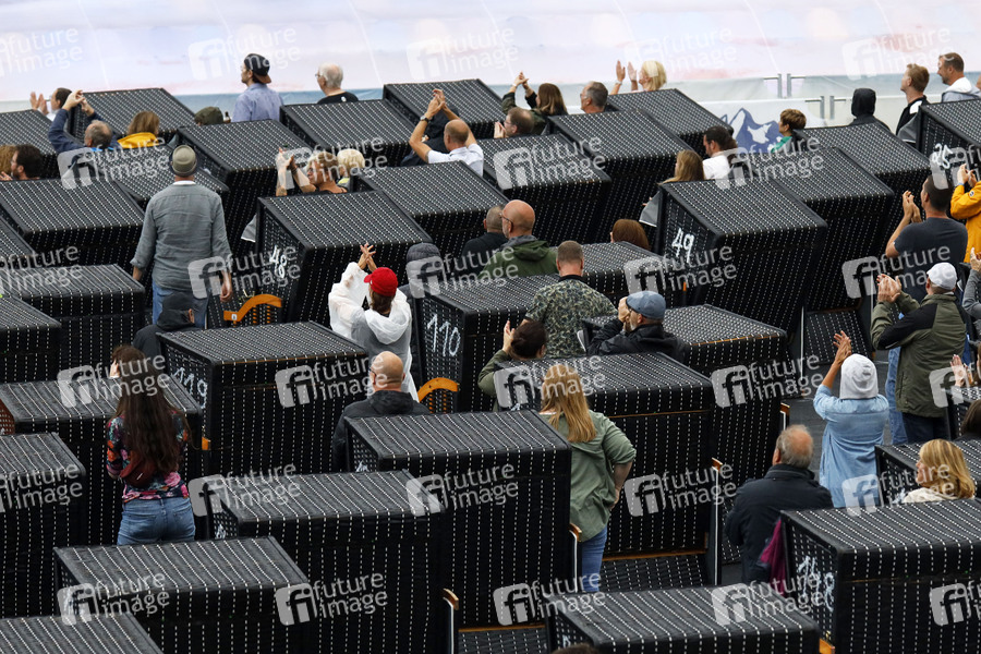 Fans von Jan Delay bei seinem Auftritt beim Strandkorb Open Air im Sparkassenpark Mönchengladbach. Mönchengladbach, 26.07.2021
