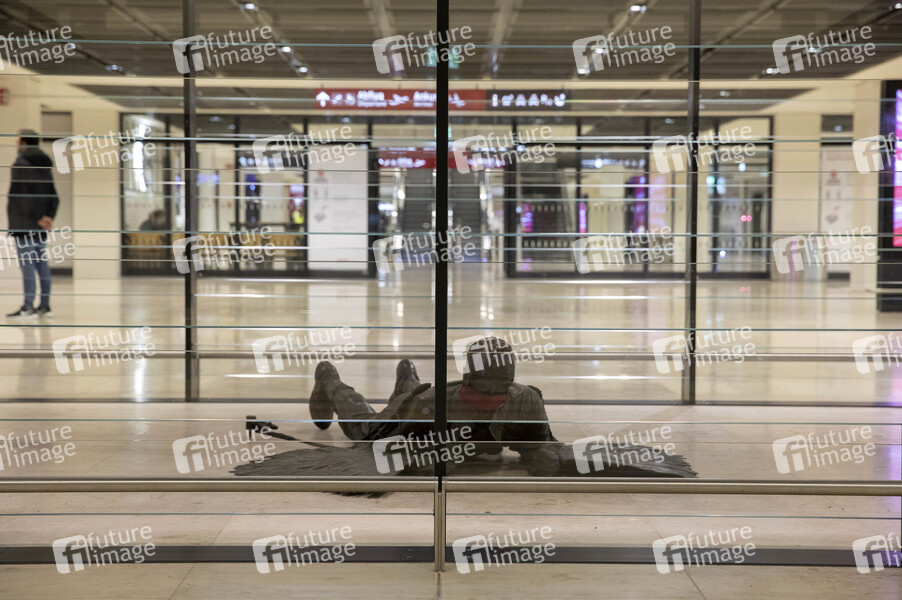 Skulptur 'Der Fall Daidalos und Ikaros' von Rolf Scholz, 1985 im Terminal 1 des Flughafens Berlin Brandenburg (BER). Schönefeld, 01.11.2020