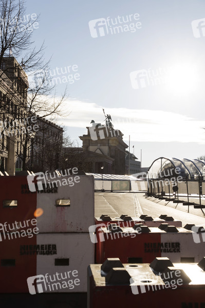 Vorbereitungen und Absperrungen zur jährlichen Silvesterfeier am Brandenburger Tor. Aufgrund der COVID-19-Abstandsregeln findet die Feier dieses Jahr nur als Fernsehübertragung ohne Livepublikum statt. Berlin, 30.12.2020