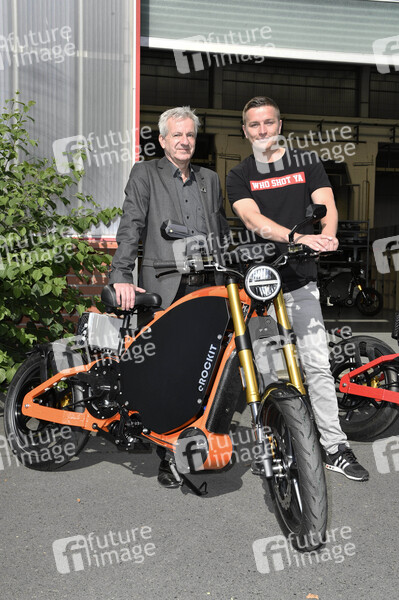 Andreas Zurwehme und Aaron Troschke beim Fototermin zum eROCKIT Press Day bei eROCKIT Systems. Hennigsdorf, 30.07.2020