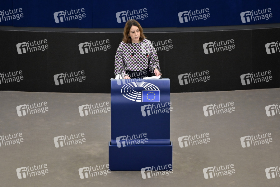 Isabel Estrada Carvalhais bei einer Plenartagung über den Schutz von Tieren beim Transport im Plenarsaal des Europäischen Parlaments. Straßburg, 20.01.2022
