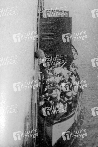 Notboot, Überlebende, Seenot, Unglück, Schiffskatastrophe, Katastrophe, Untergang, Passagierschiff, Dampfer, Schiff, Luxusliner, Ozean-Riese, Kreuzfahrt, Eisberg, Meer, Seefahrt, Kollision, Schiffsreise
