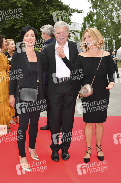 Marisa Burger, Gast und Karin Thaler beim Bavaria Film Fest Empfang 2019 im Rahmen des 37. Filmfest München 2019 auf dem Bavaria Filmgelände. Geiselgasteig, 02.07.2019