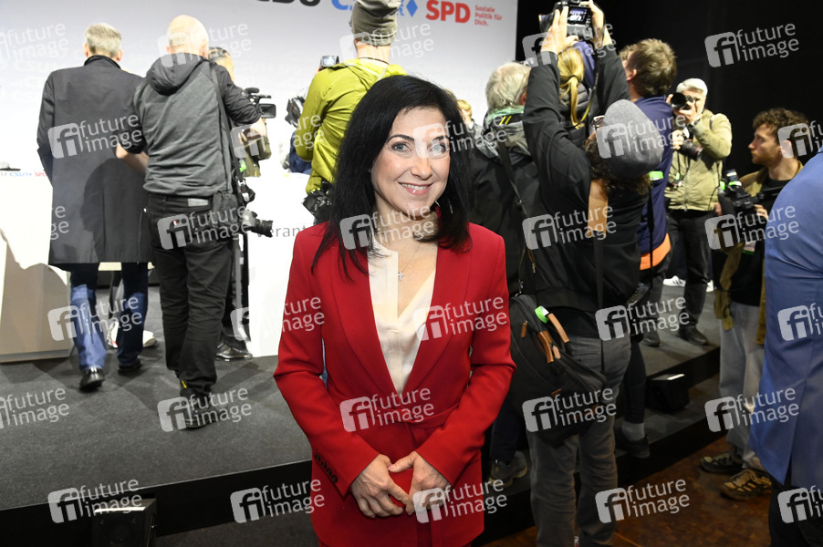 Katherina Reiche bei der Unterzeichnung des Koalitionsvertrages zwischen CDU, CSU und SPD im Gasometer Schöneberg. Berlin, 05.05.2025