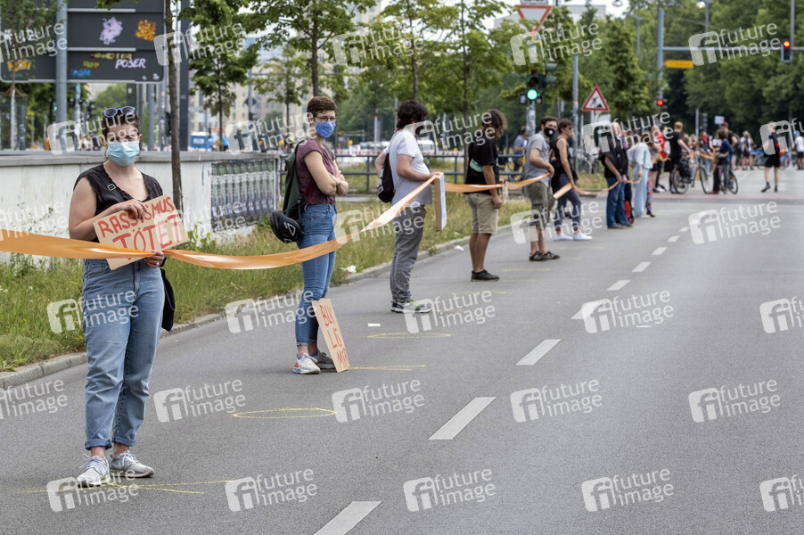 Demonstration vom Bündnis 'Unteilbar' mit einer Menschenkette gegen Rassismus und soziale Ungerechtigkeit vom Brandenburger Tor in Berlin-Mitte bis zum Hermannplatz in Berlin-Neukölln unter dem Motto 'SoGehtSolidarisch'. Berlin, 14.06.2020