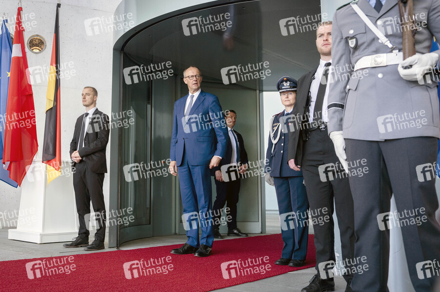 Friedrich Merz beim Empfang der dänischen Ministerpräsidentin mit militärischen Ehren zu einem gemeinsamen Gespräch mit anschließendem Pressestatement im Bundeskanzleramt. Berlin, 11.06.2025