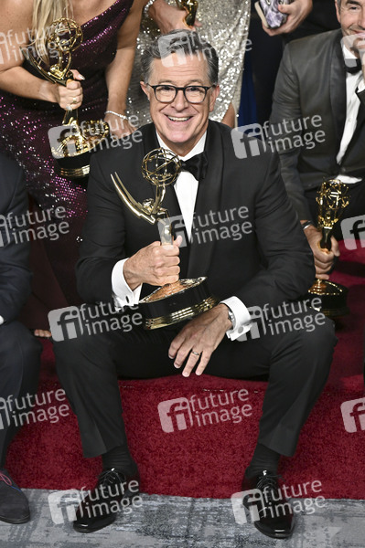 Stephen Colbert mit dem Emmy für die besten Talk-Serie 'The Late Show with Stephen Colbert' beim Preisträger-Photocall der 77. Primetime Emmy Awards 2025 im Peacock Theater. Los Angeles, 14.09.2025