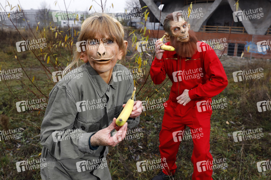Bodypainting, Body-Painting, Körperkunst, Körperfarben, Farbe, Bemalung, Make-up, Kunst, Malerei, Dystopie, Science Fiction, Affen, Affe, Schimpanse, Schimpansen, Banane, Bananen, body painting, body art, colors, dystopia, monkeys, monkey, chimp, chimpanzee, chimps, chimpanzees, banana, bananas