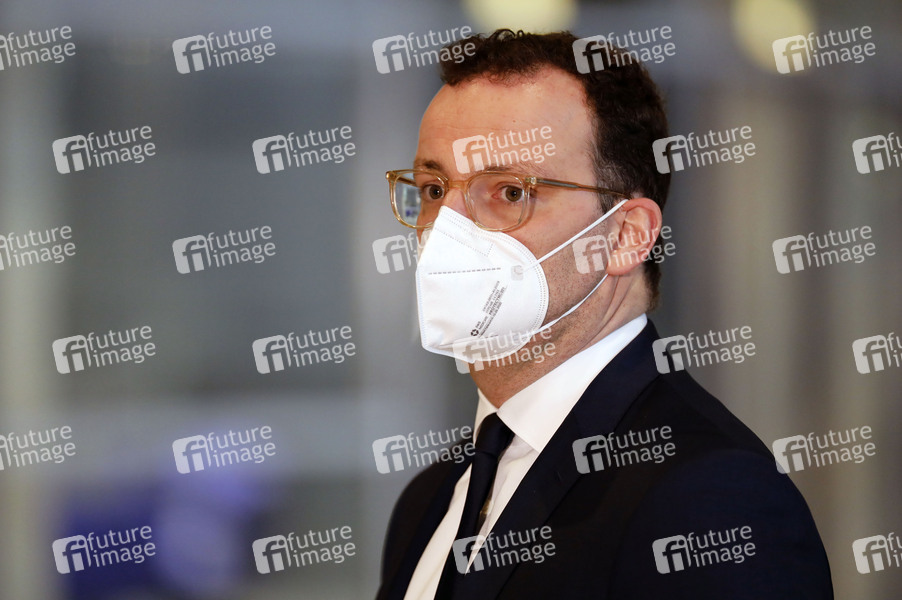 Jens Spahn bei einem Pressestatement im Rahmen der 204. Sitzung des Deutschen Bundestages im Reichstagsgebäude. Berlin, 14.01.2021