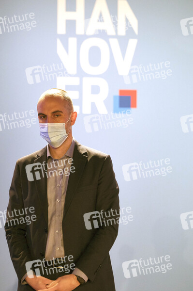 Belit Onay beim Wirtschaftsempfang 2021 der Landeshauptstadt Hannover, der coronabedingt digital stattfindet, mit dem Thema 'Umweltfreundliche Mobilität und Wirtschaft - ein Widerspruch?' in der Eilenriedhalle. Hannover, 19.04.2021