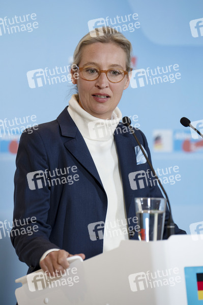 Politik, Statement, Pressekonferenz, PK, Reichstag, Deutscher Bundestag, Demokratie, Parlament, Parlamentsgebäude, Volksvertreter, MdB, Mitglied des Bundestages, Abgeordnete, Politikerin, Vorsitzende der AfD-Bundestagsfraktion, Bundessprecherin der AfD