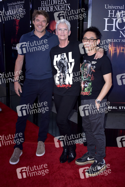 Jason Blum, Jamie Lee Curtis und James Wan bei der Eröffnung der 'Halloween Horror Nights 2022' in den Universal Studios Hollywood. Universal City, 08.09.2022
