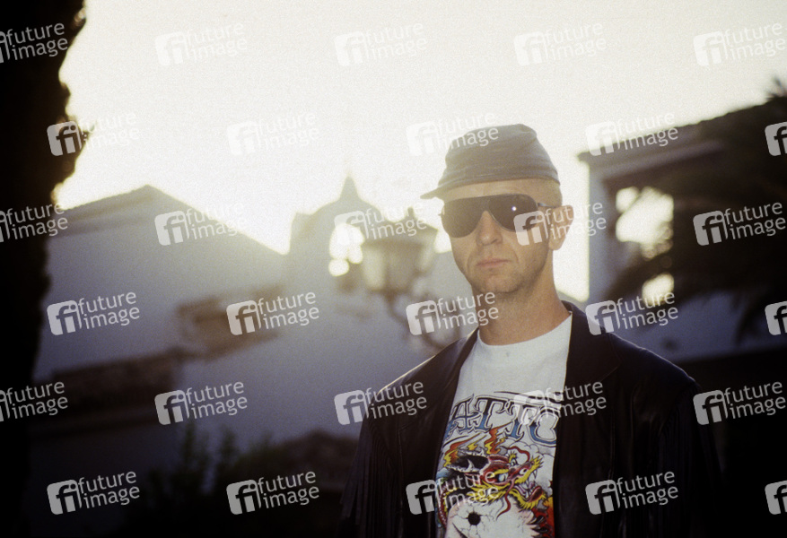 Rob Halford von Judas Priest bei einem Photoshooting in einer Villa. Marbella, 11.07.1990