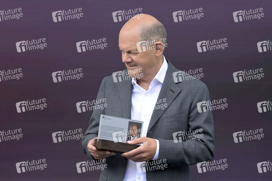 Olaf Scholz bei der Grundsteinlegung für das zukünftige Quartier Siemensstadt Square am Rohrdamm. Berlin, 25.06.2024