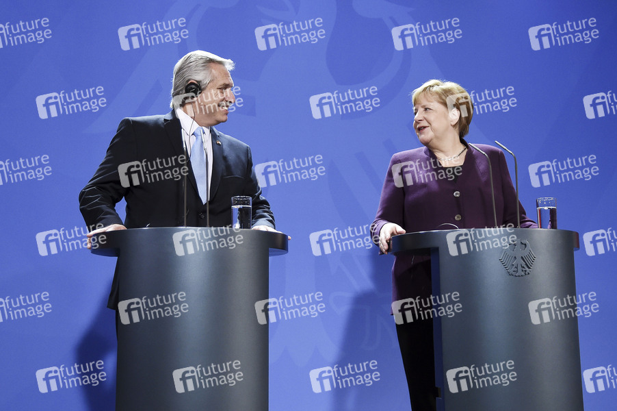 Alberto Angel Fernandez und Angela Merkel beim Pressestatement zum Antrittsbesuch des Präsidenten von Argentinien im Bundeskanzleramt. Berlin, 03.02.2020