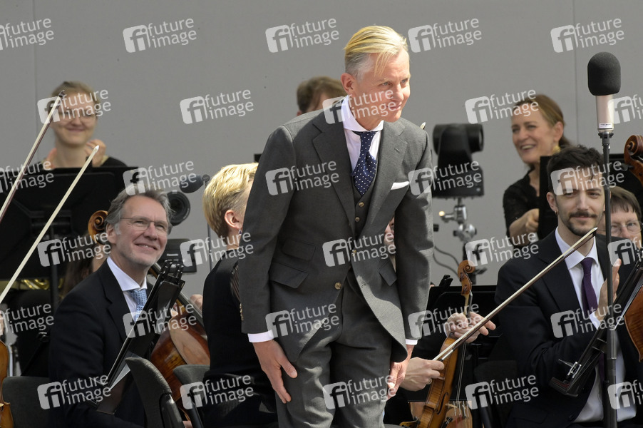 Max Raabe beim Staatsakt zu 75 Jahre Grundgesetz auf dem Forum zwischen Bundestag und Kanzleramt. Berlin, 23.05.2024